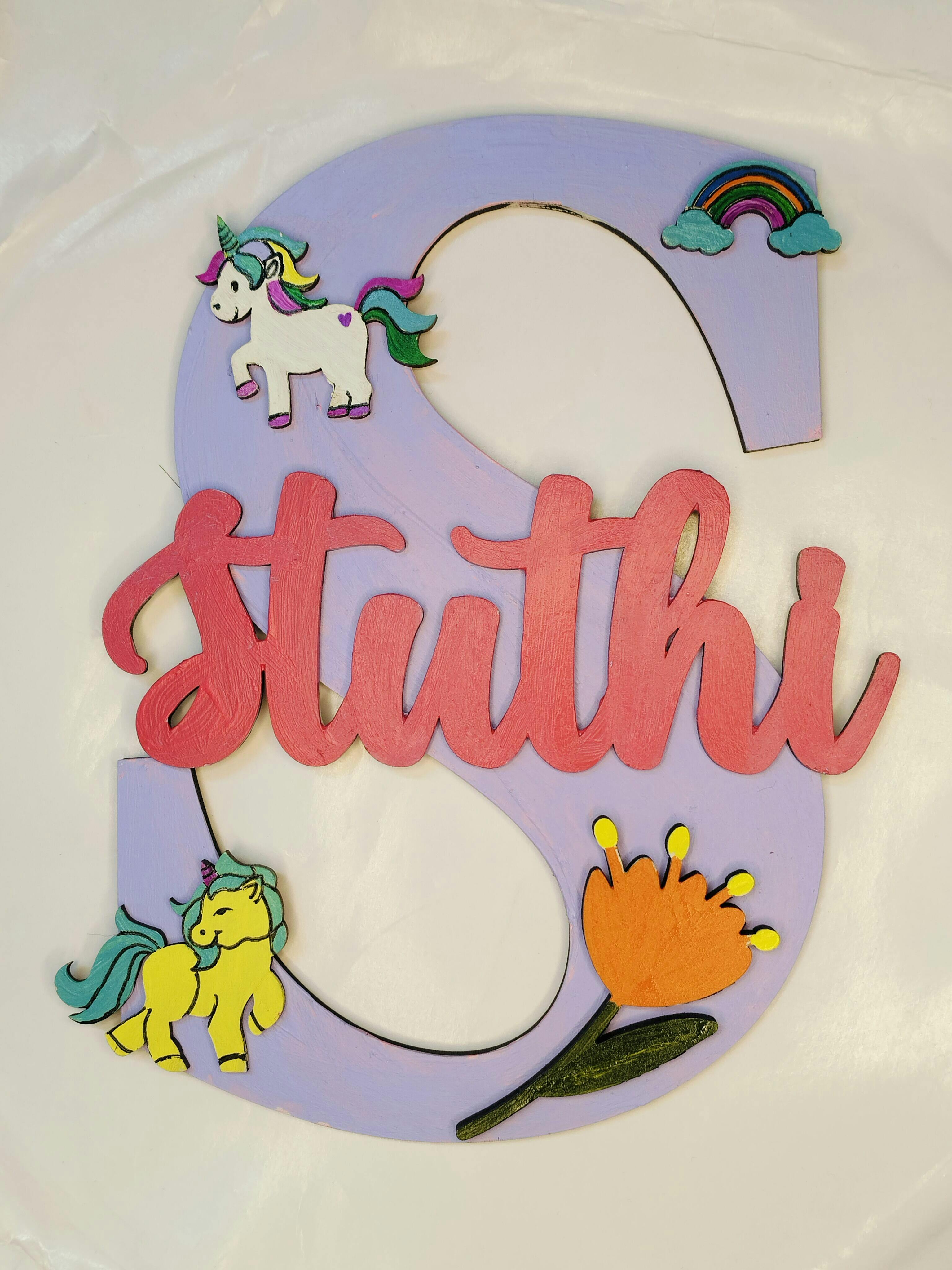 Alphabet Monogram Unicorn Nameplate MDF Design 1