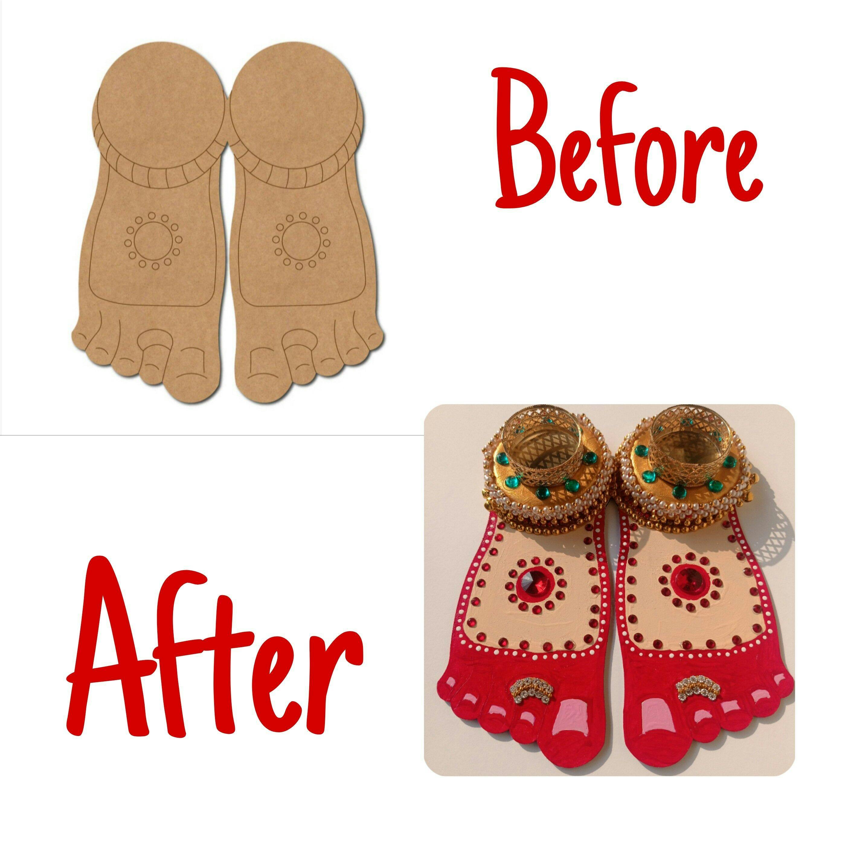 Lakshmi Paul Feet Diya Tealight Holder Pre Marked MDF Design 1