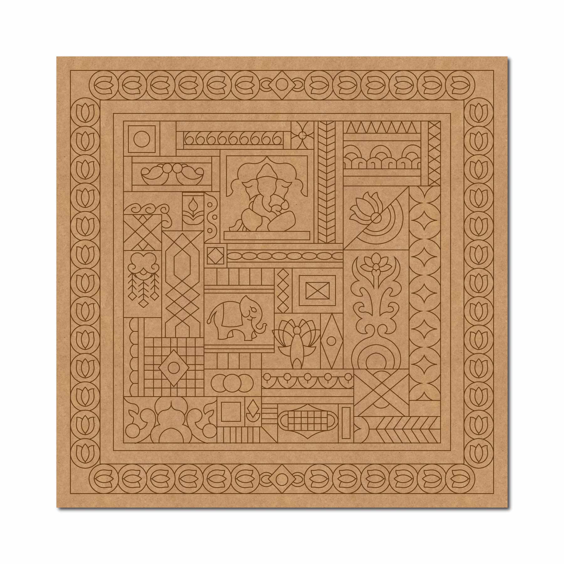 Lippan Ganesha Lotus Pre Marked Base MDF Design 1