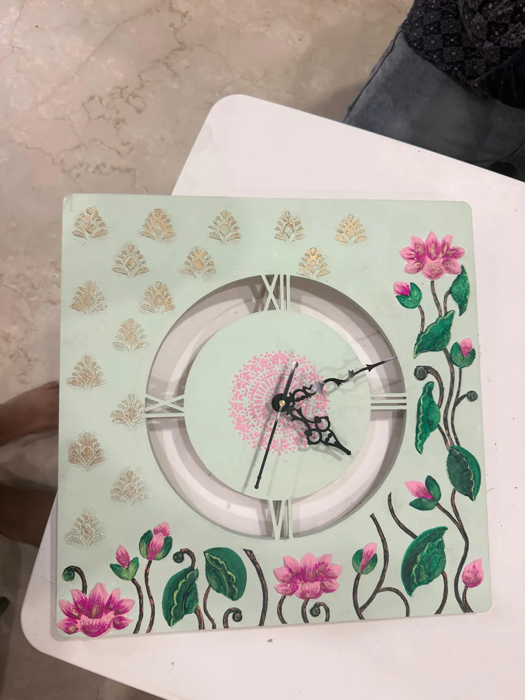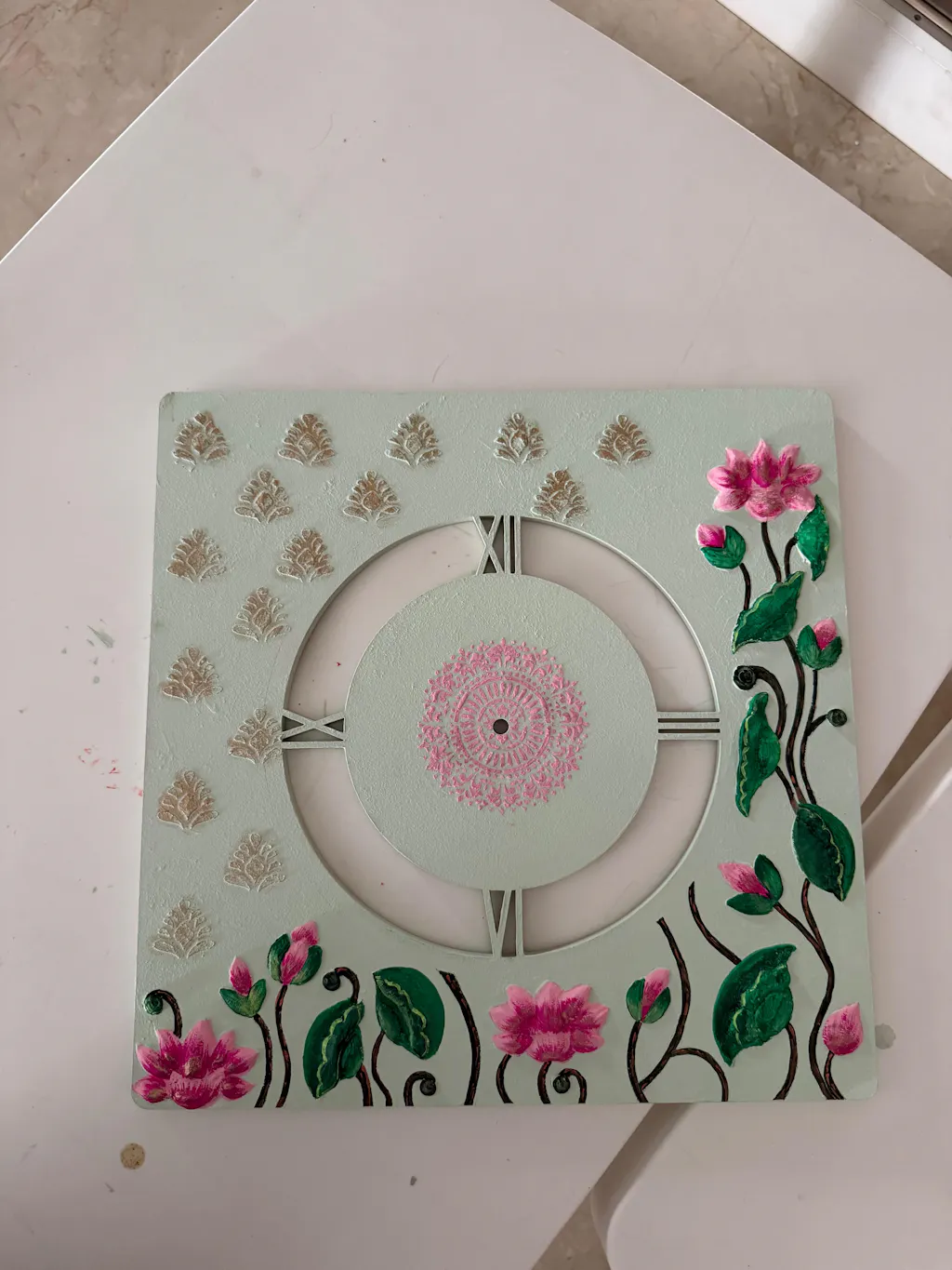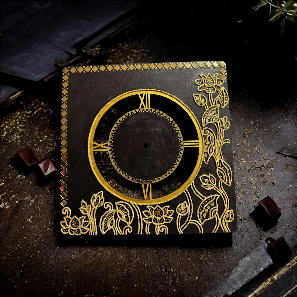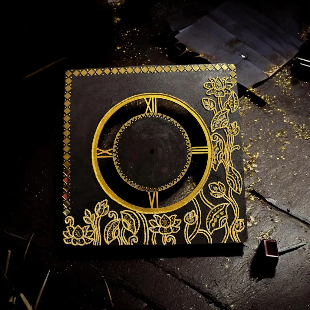 Pichwai Lotus Clock Pre Marked MDF Design 1